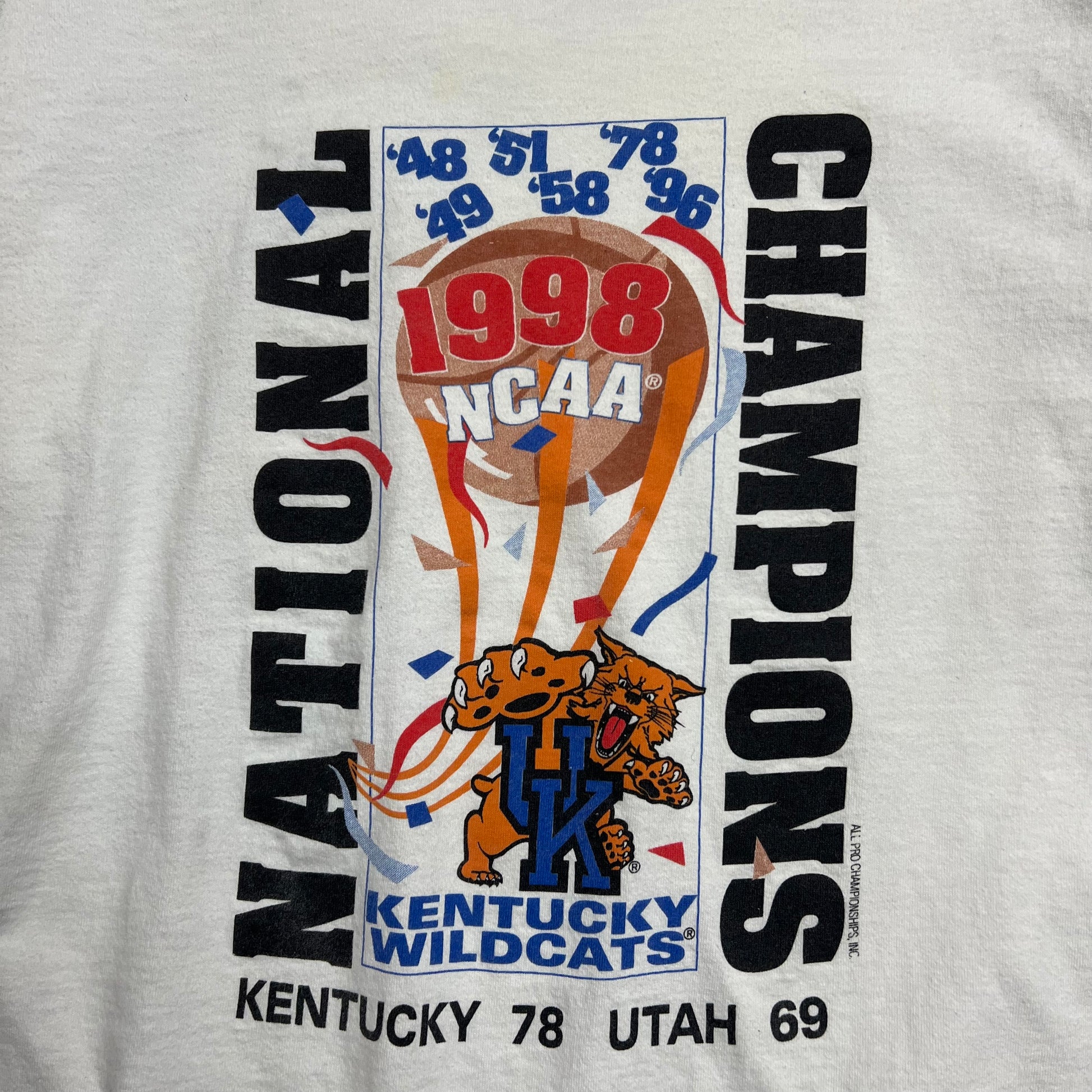 1998 Kentucky Wildcats NCAA National Champions T-shirt - L